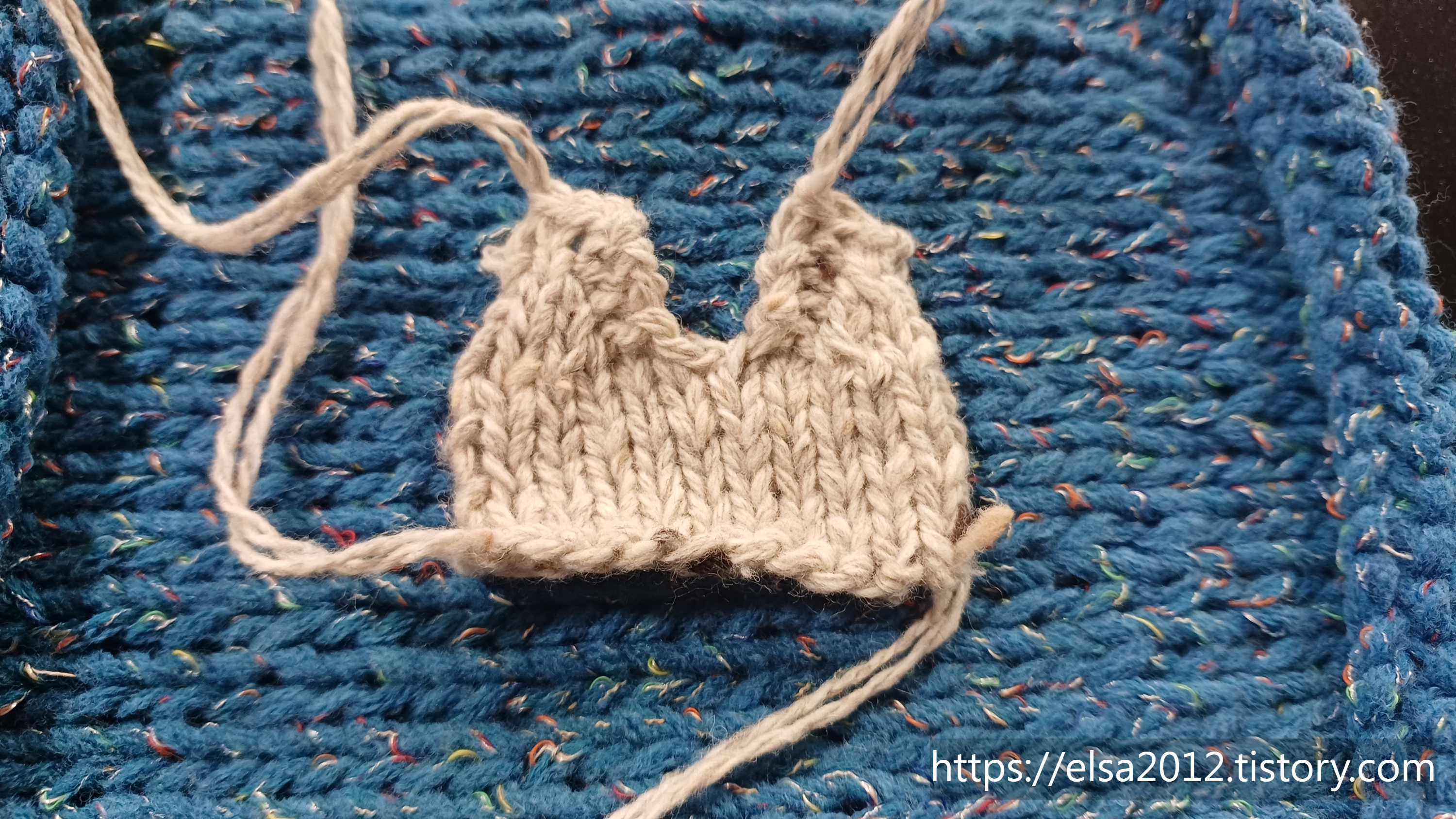 장갑바늘은 이렇게 작은 옷이나 소품등을 만들때 아주 좋은데 실이 빠는 것이 걱정된다면