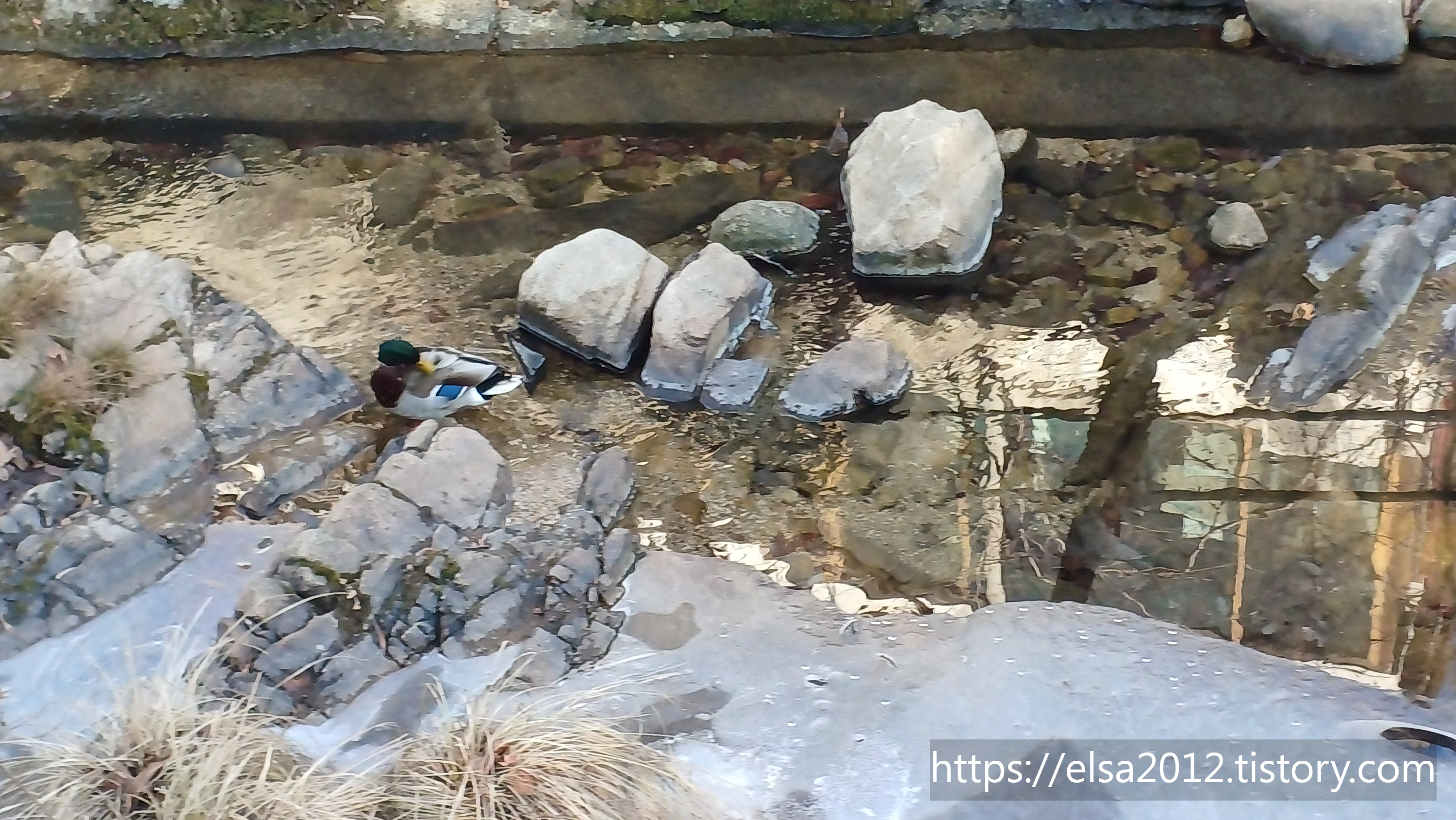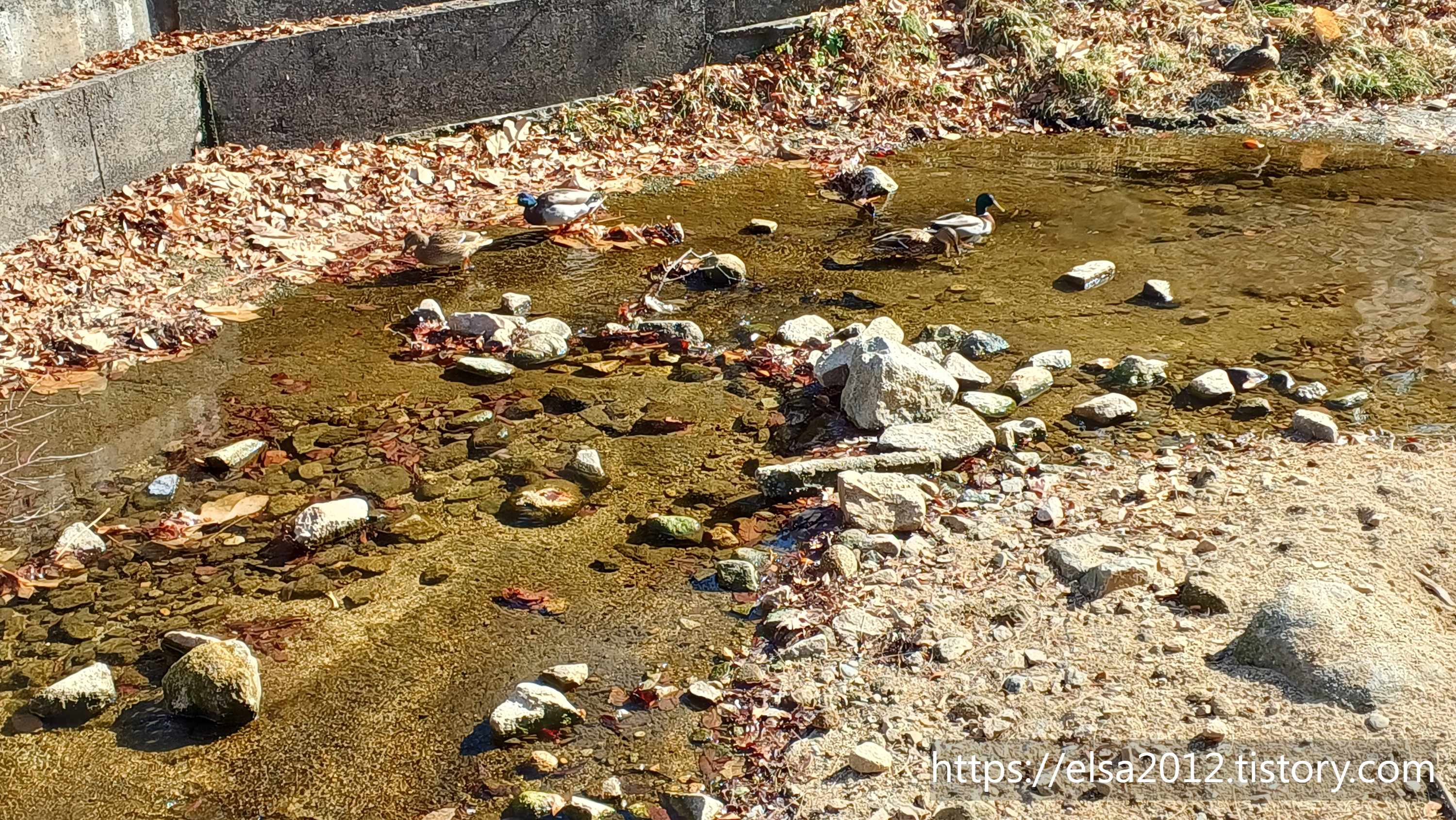 미세먼지는 무척 심하지만 날씨는 좋아서 천둥오리들이 물놀이하며