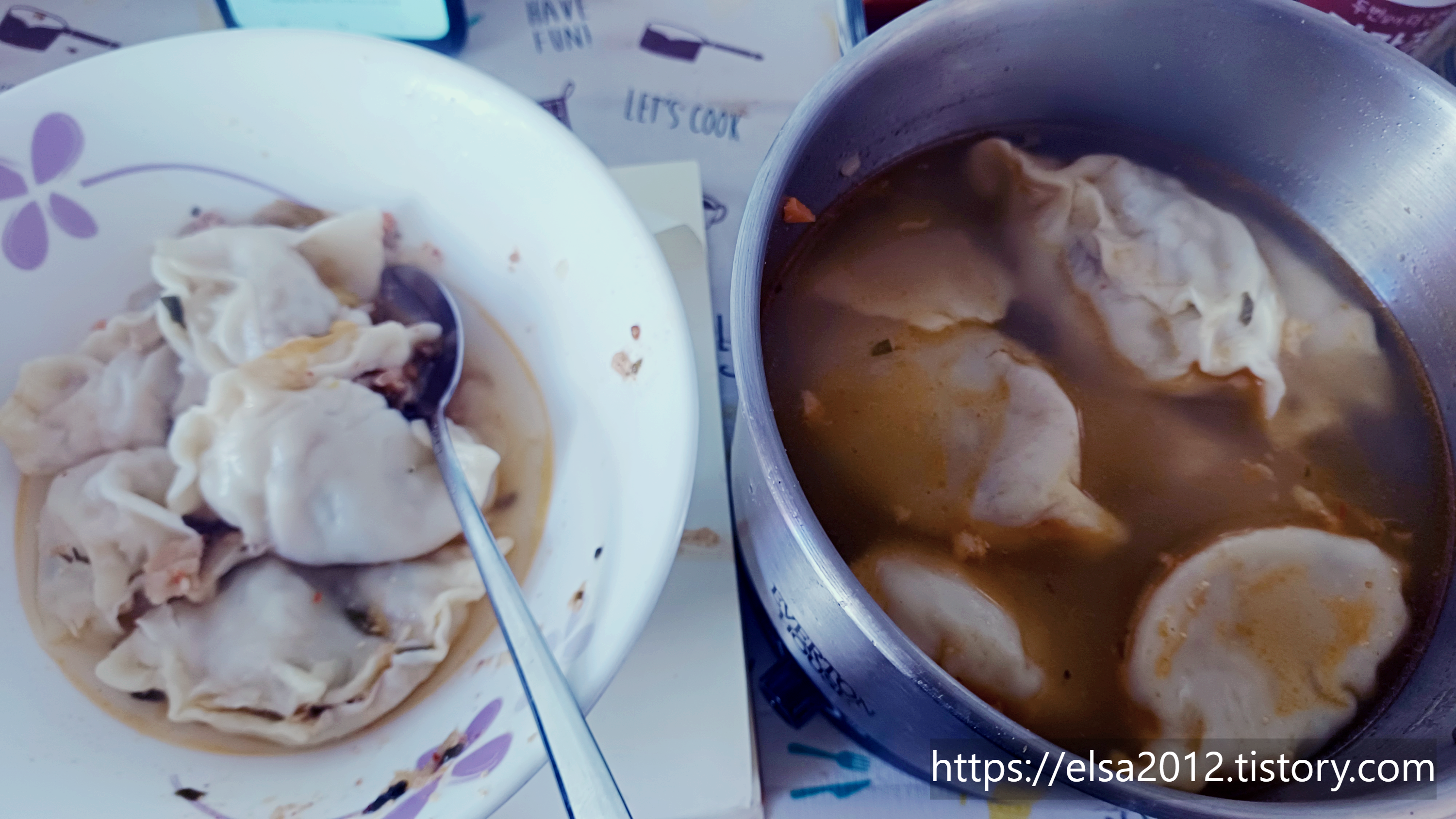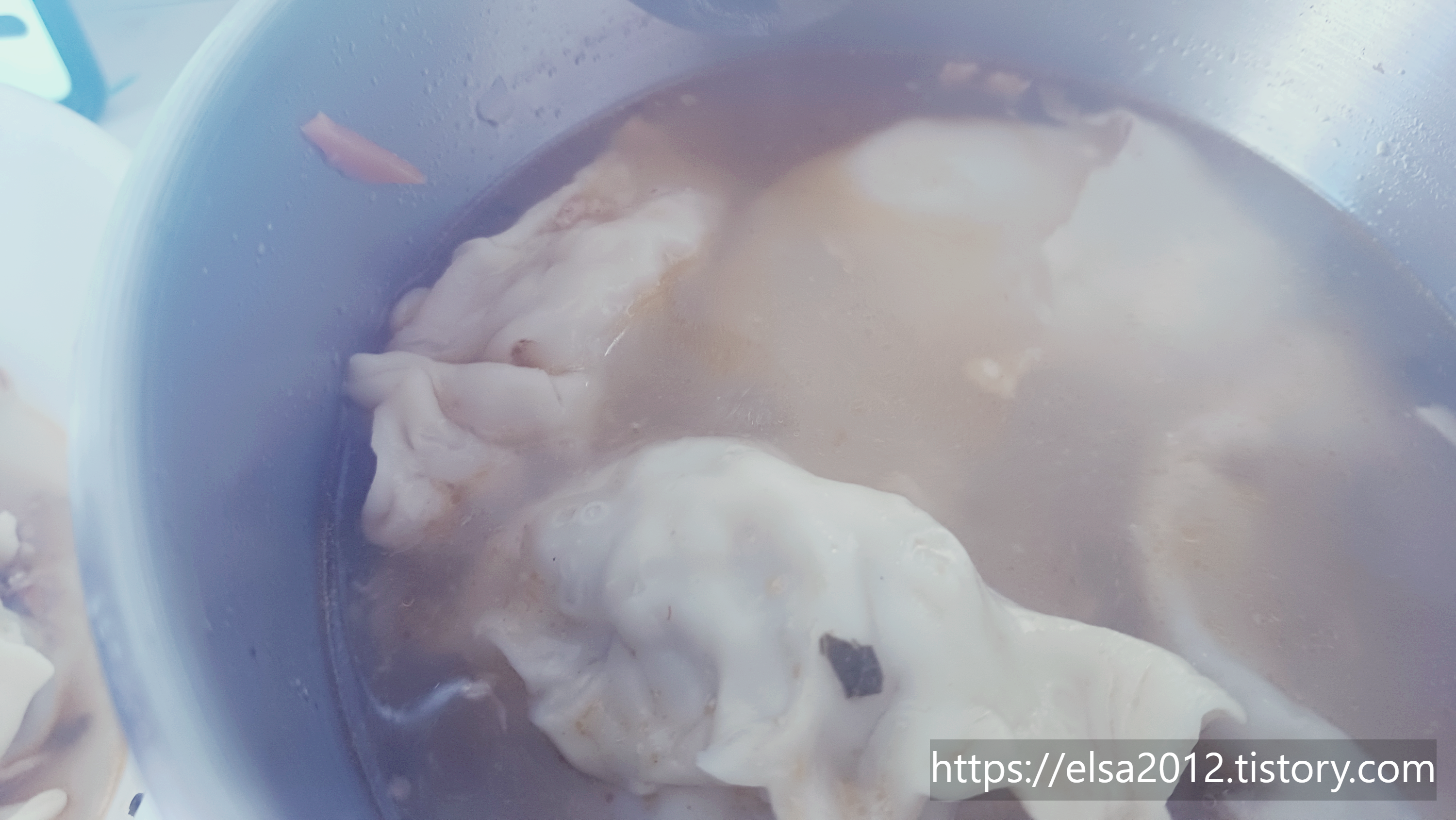 그리고 전기포트에 넣어 만두국 끓여먹기. ^^