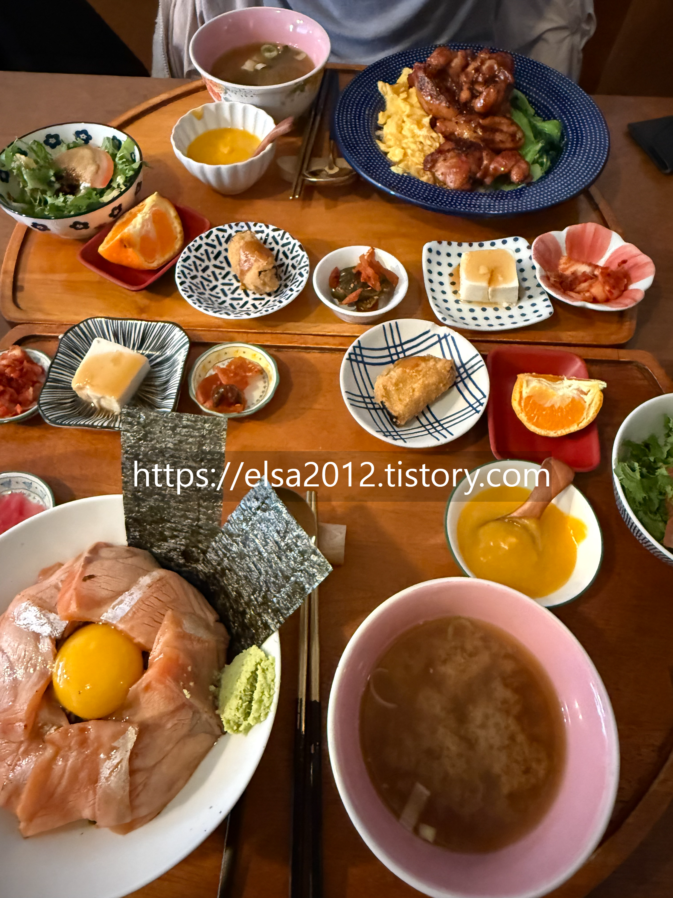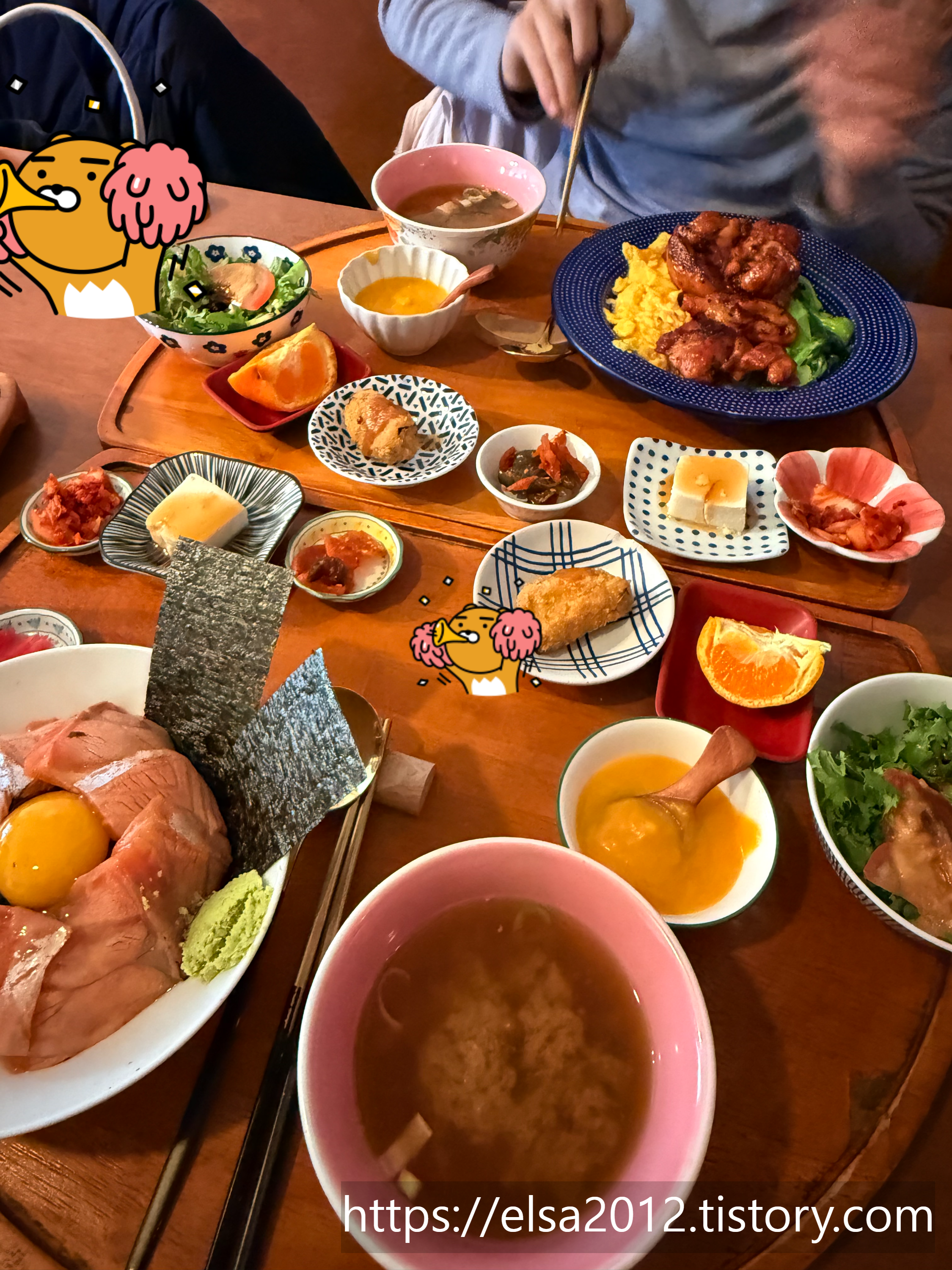 그리고 잠시 후 다양한 반찬들이 가득한 예쁜 식사가 나왔답니다.