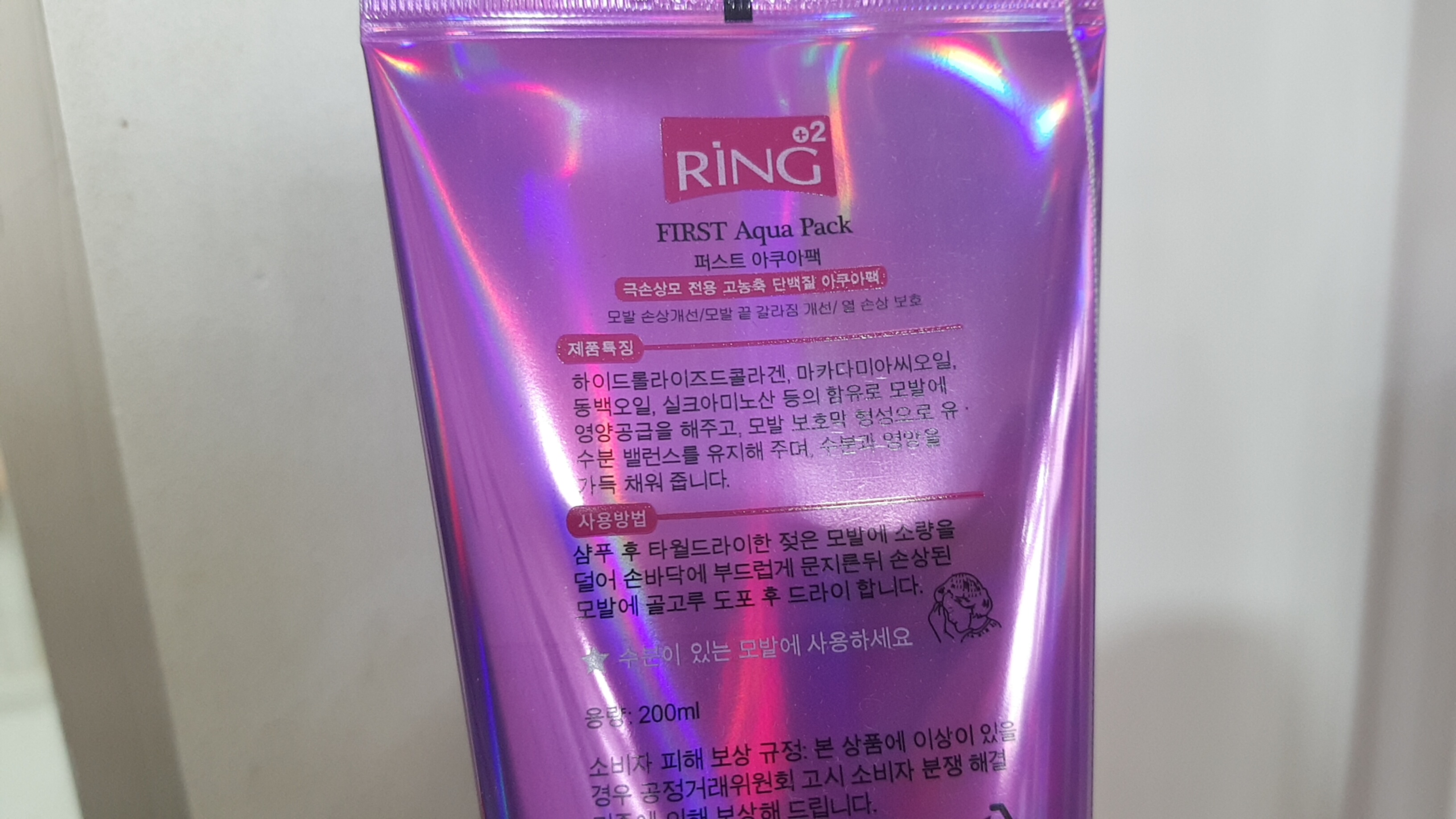 오늘 리뷰하는 제품은 퍼스트아쿠아팩 RING+2 라는 헤어트리트먼트 아쿠아팩으로 머리를 샴푸로 감고