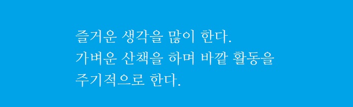가까운 곳에 산책도 하며 바깥 활동을 주기적으로 한다.