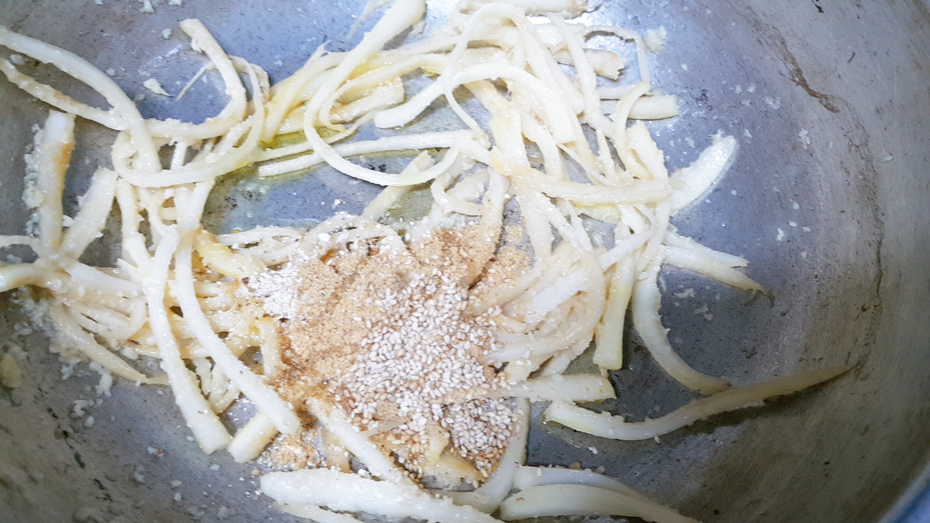 위와 같이 기름을 두르고 살짝 볶다가 볶음 참깨, 볶은 버섯가루, 볶은 참깨가루, 소금, 간장을 넣고 볶다가