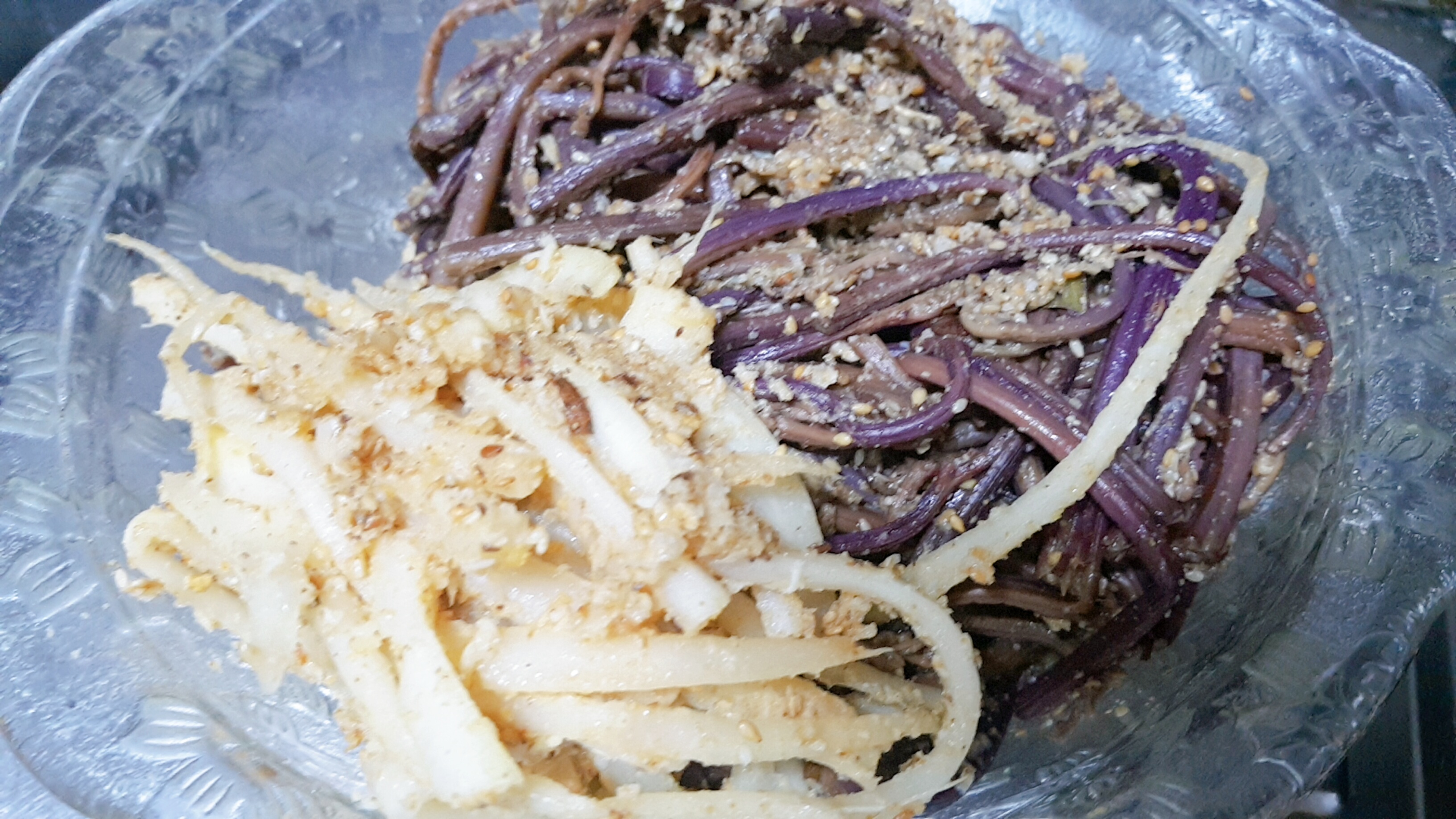 이렇게 내일 아침 추석 상차림에 올릴 3색 나물이 완성 되었습니다.