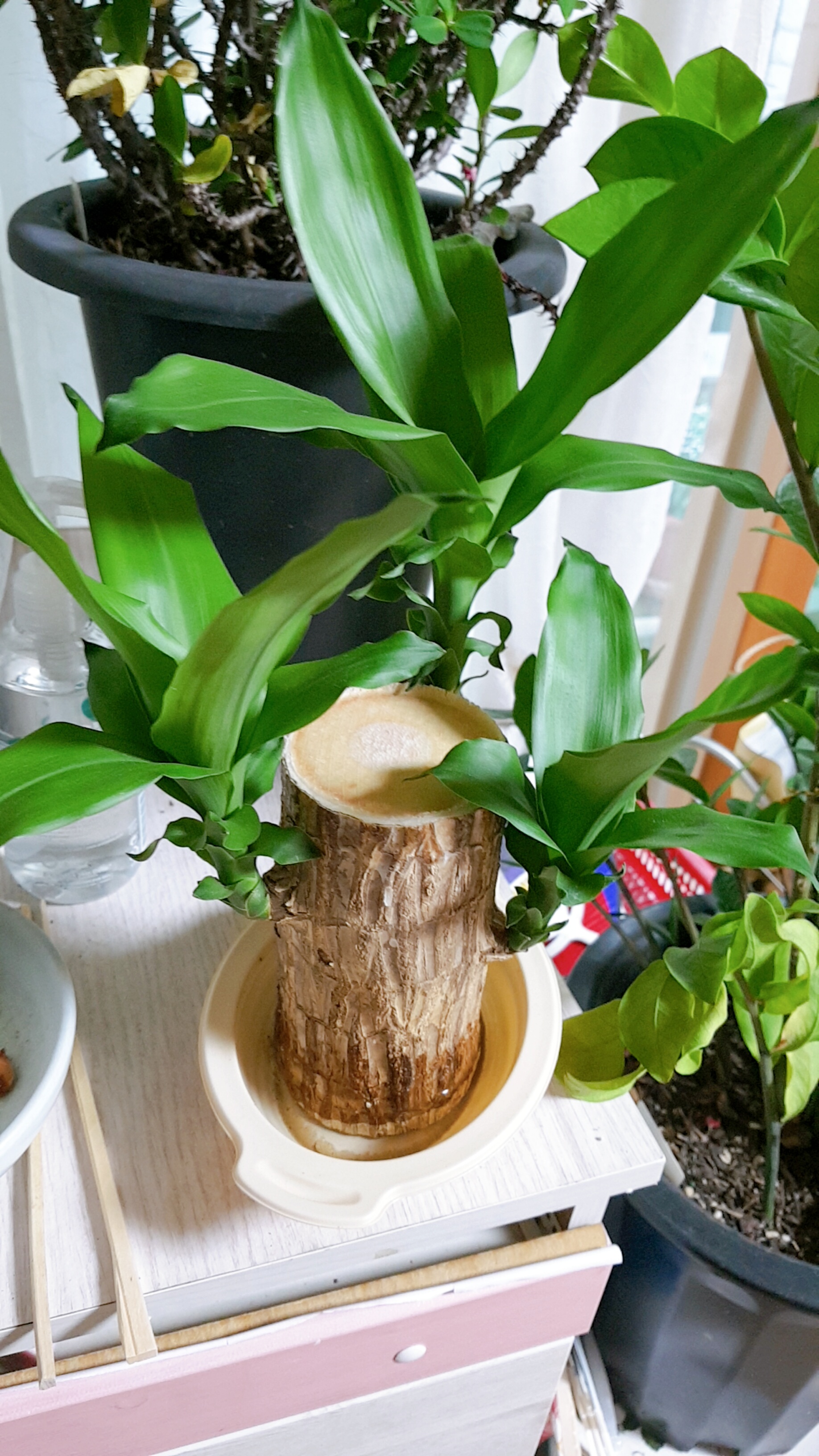 행운목도 싱그럽게 자라는데요, 이렇게 물에만 담아놓아도 아주 잘 자란다 하네요.