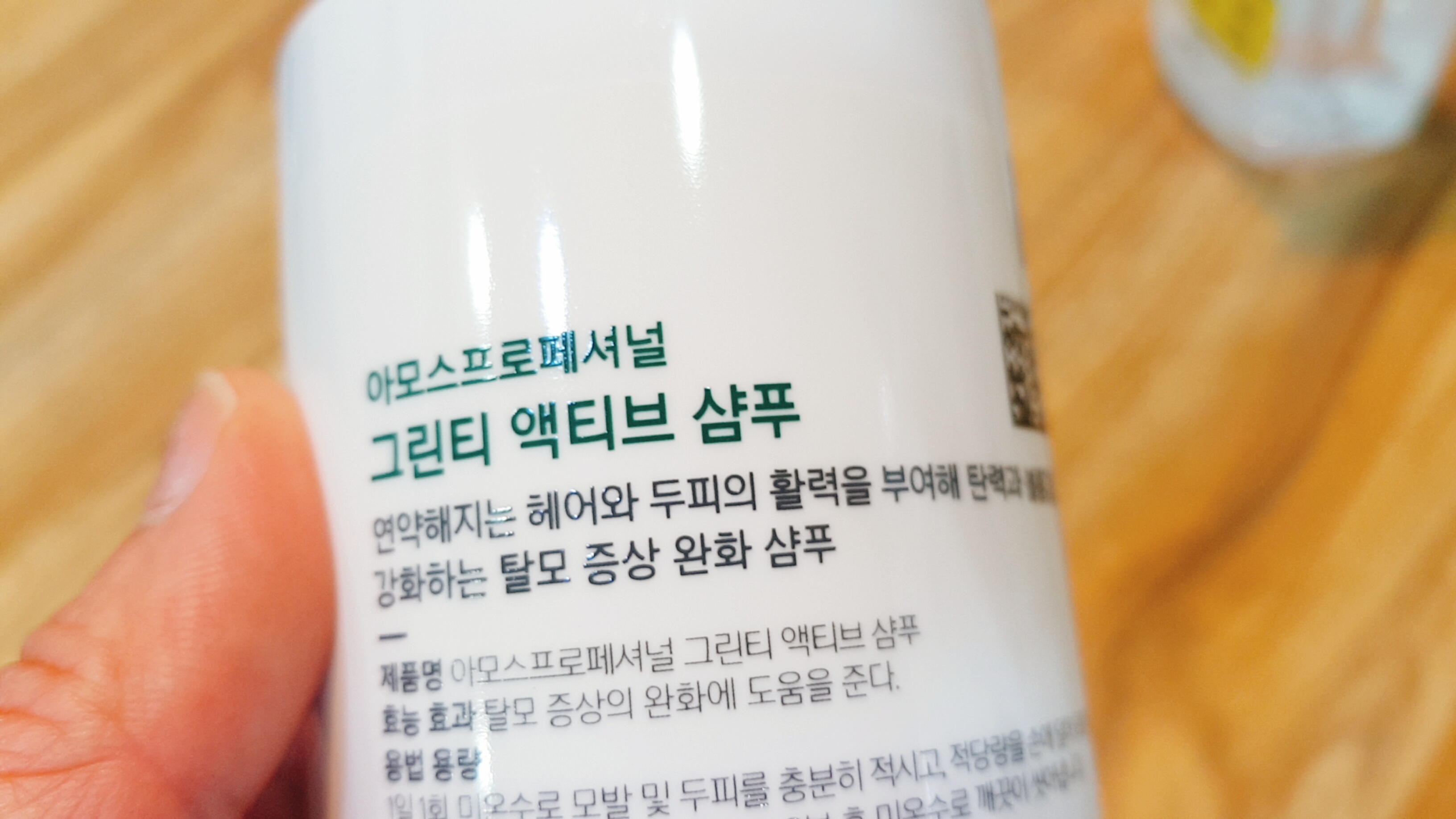 아모스프로페셔널 그린티 액티브 샴푸는 향기가 좋으면서도 시원한 느낌입니다.