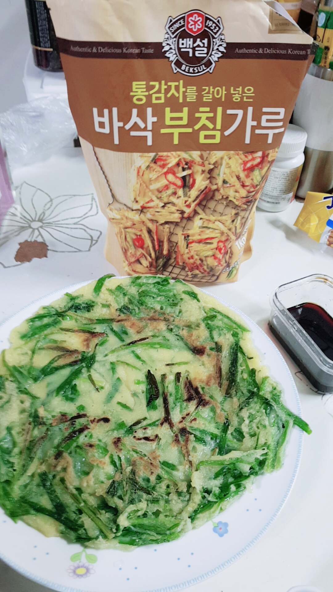 주말 야식~ 부추전 / 백설 통감자를 갈아 넣은 바삭부침가루