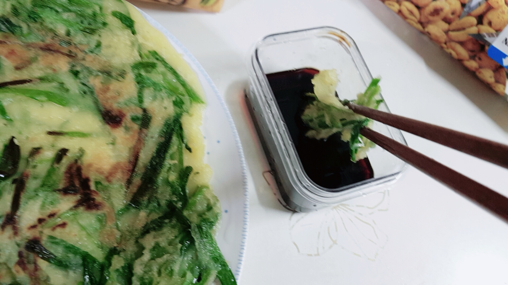 소량만 넣고 아무것도 안 넣어봤네요. 반죽보다 부추가 더 많이 들어가게 한것 같아요. ^^