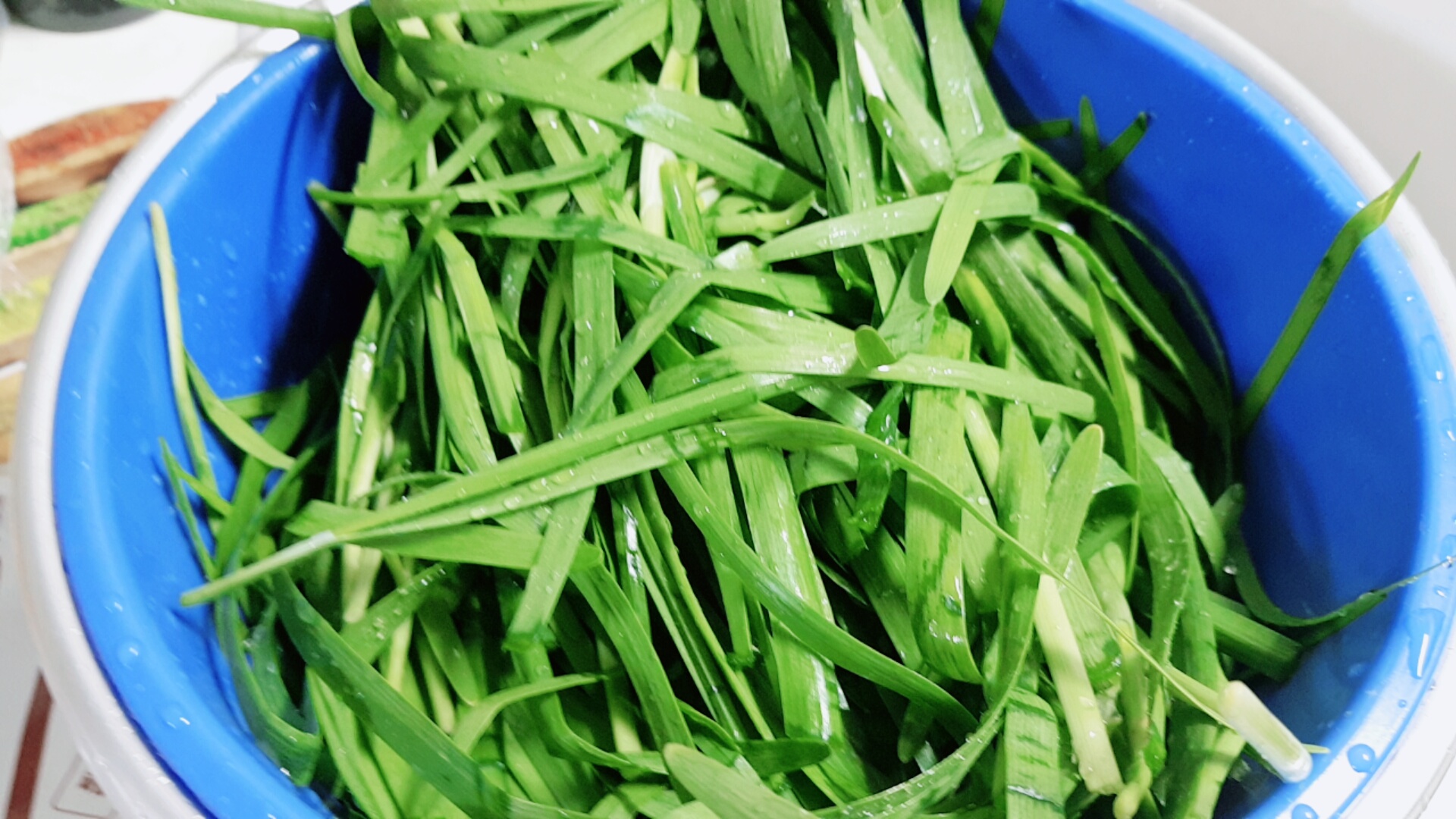 부추전을 부쳐야 하니 이렇게 준비했답니다. 정말 간단하고요. 부추를 씻어서 자르기만 하면 끝~ !