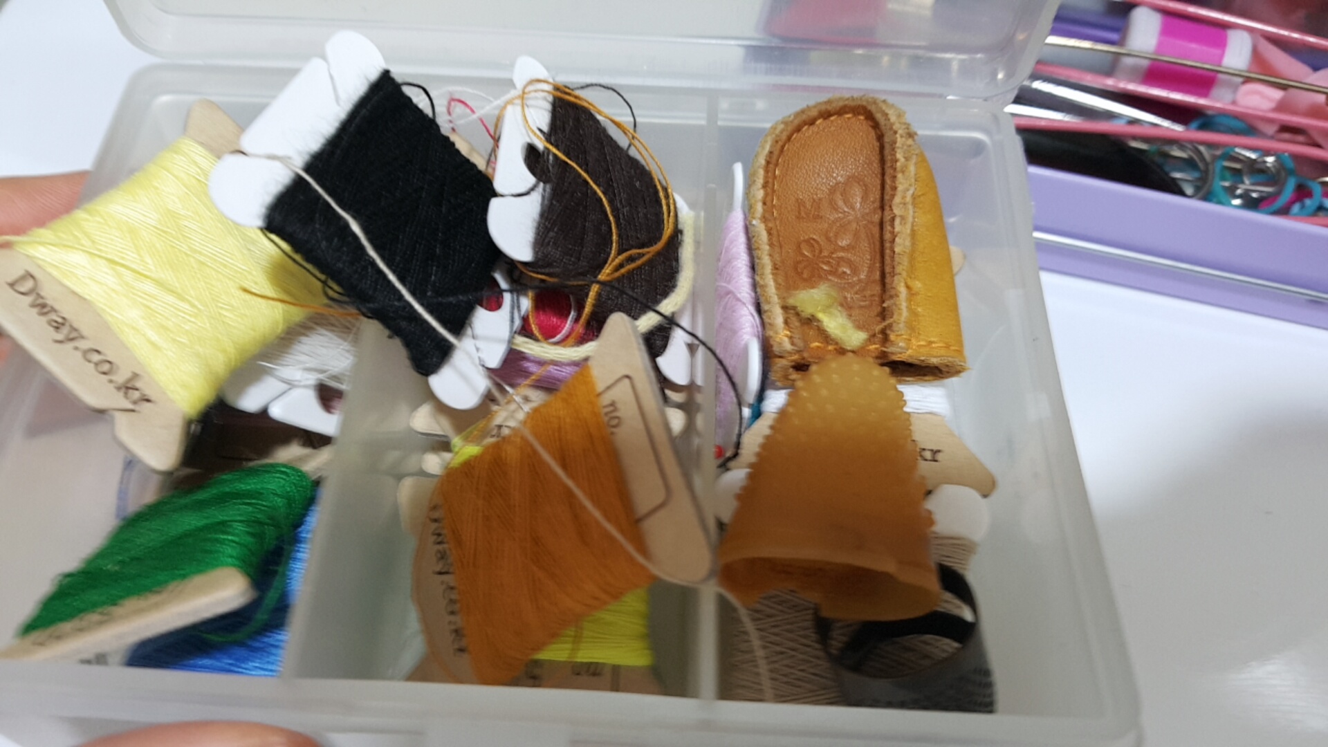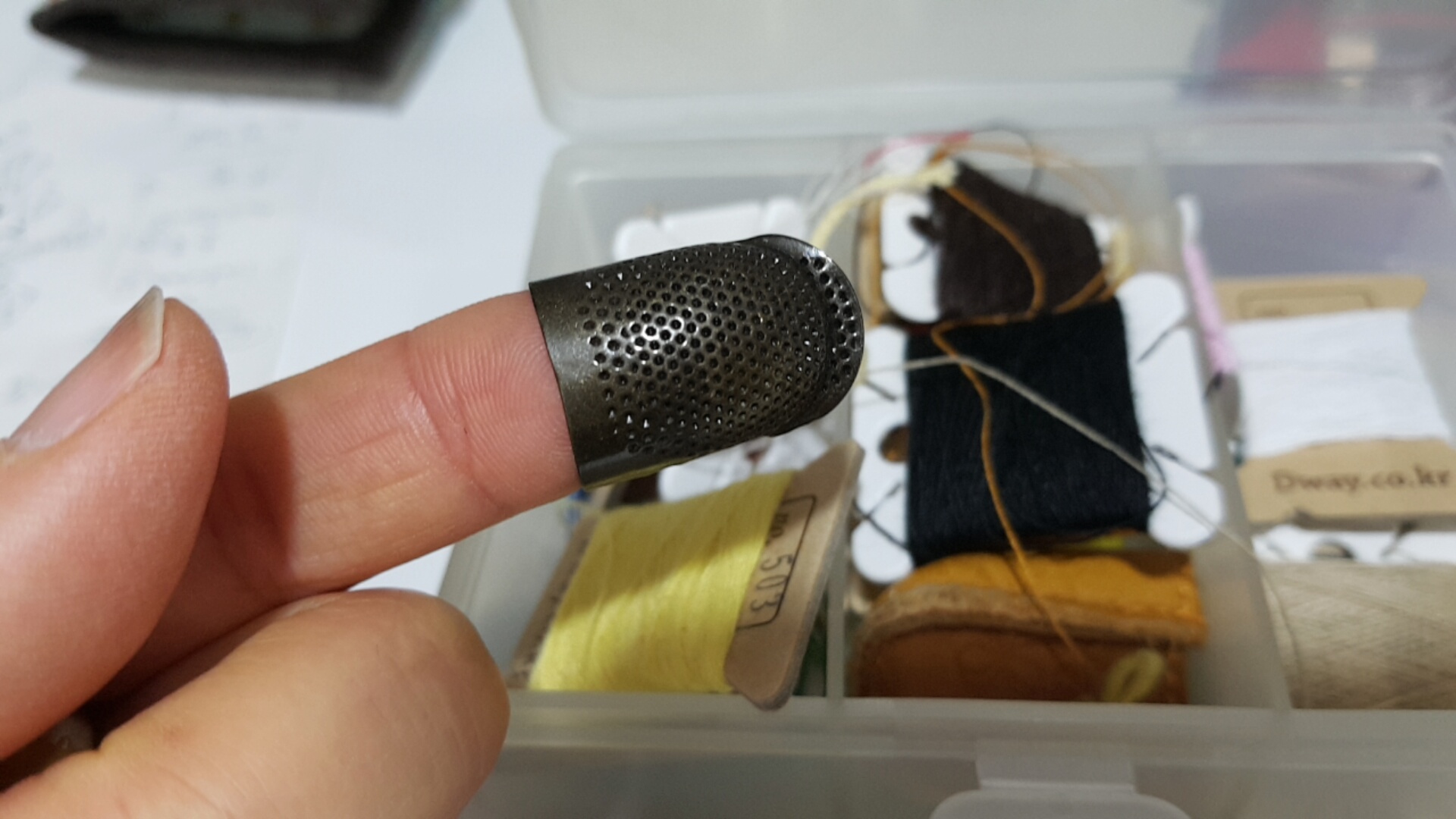 그리고 퀼트를 하는데 필수품인 골무들~ 퀼트가죽골무와 금속골무등등~