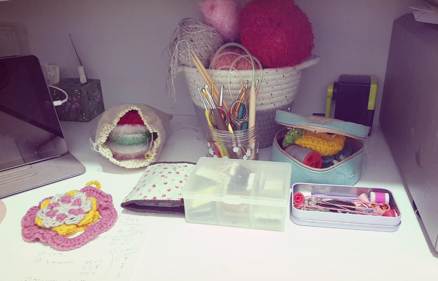 제 취미 라이프는 이렇답니다. 거의 모든 부분 바느질과 뜨개질로 보내지요.