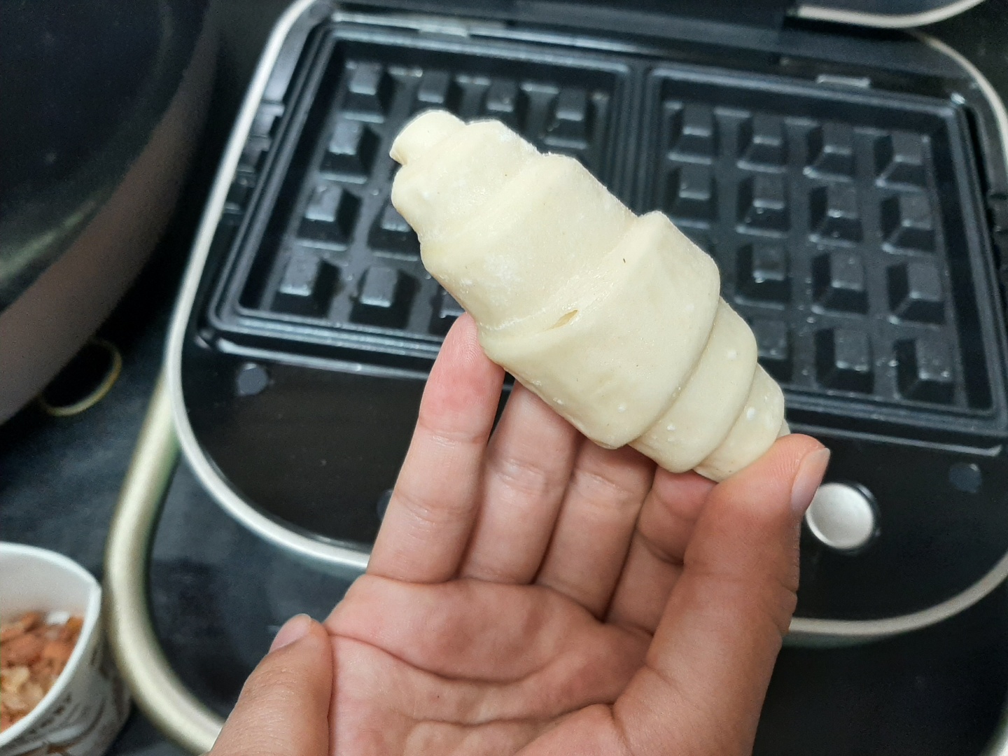 작고 귀여운 모양에 요렇게 손안에 쏙~ 와플기에 들어가기 전엔 맛이 어찌나 궁금하던지요.