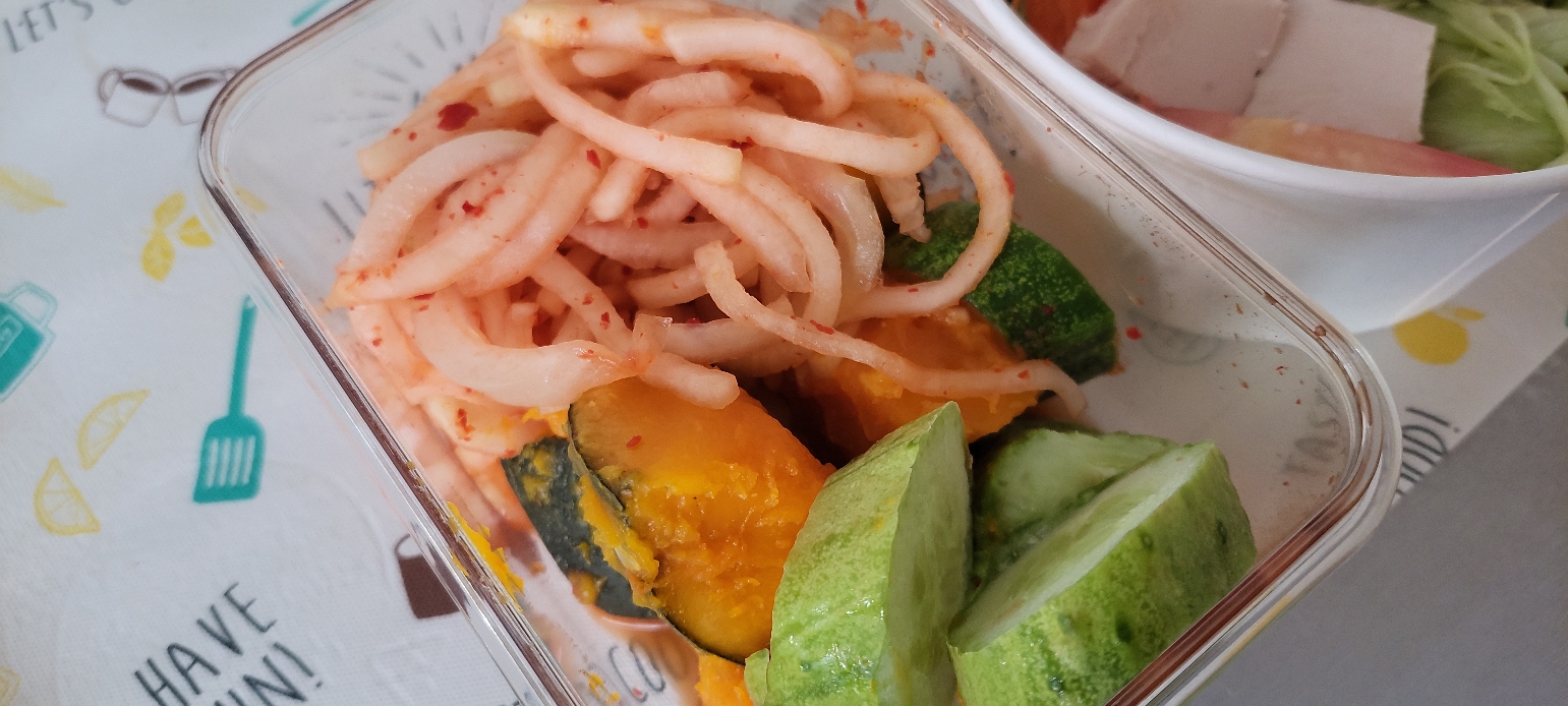 참 다양하네요. 무생채, 단호박찜, 오이,