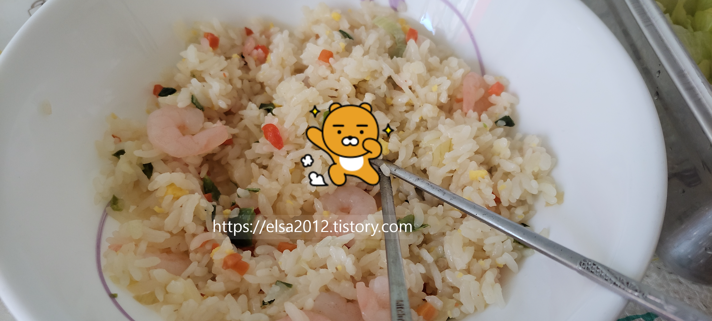 (이 새우볶음밥은 나름 맛나고 덜 짜고 양이 많아 꼭 구입해둔답니다.