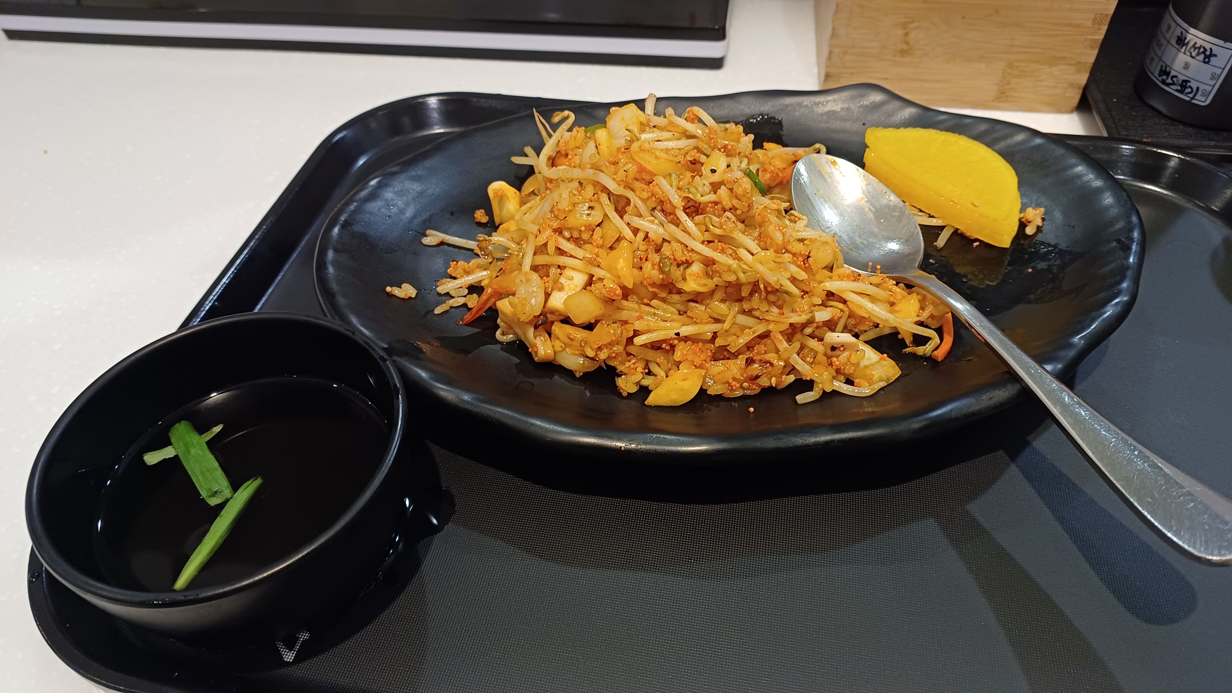 전 고기를 못 먹어서 해물 날치알볶음밥.. 아이들은 비프쌀국수, 해물짬뽕 칼국수인가요?^^ 를 먹었답니다.