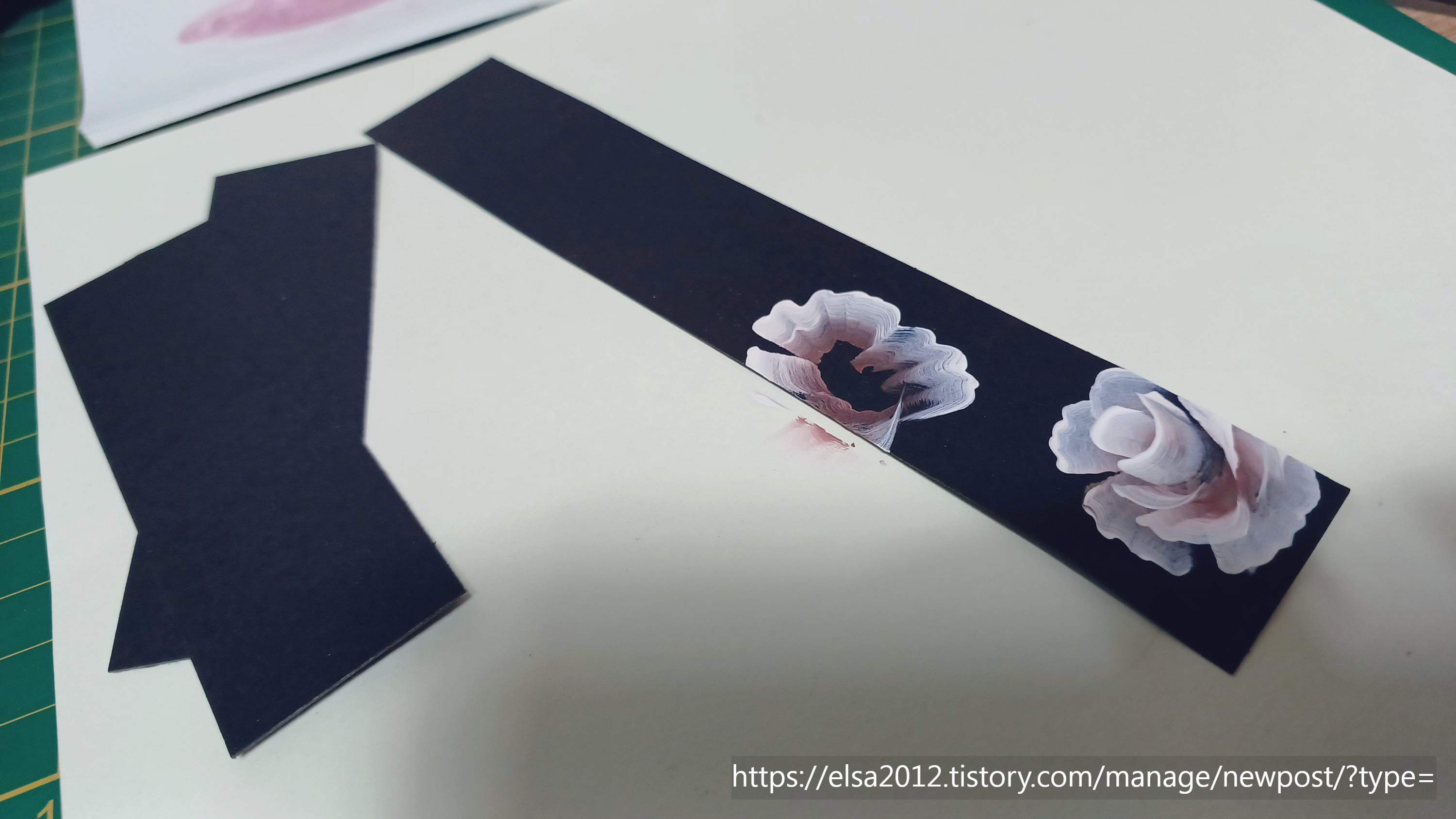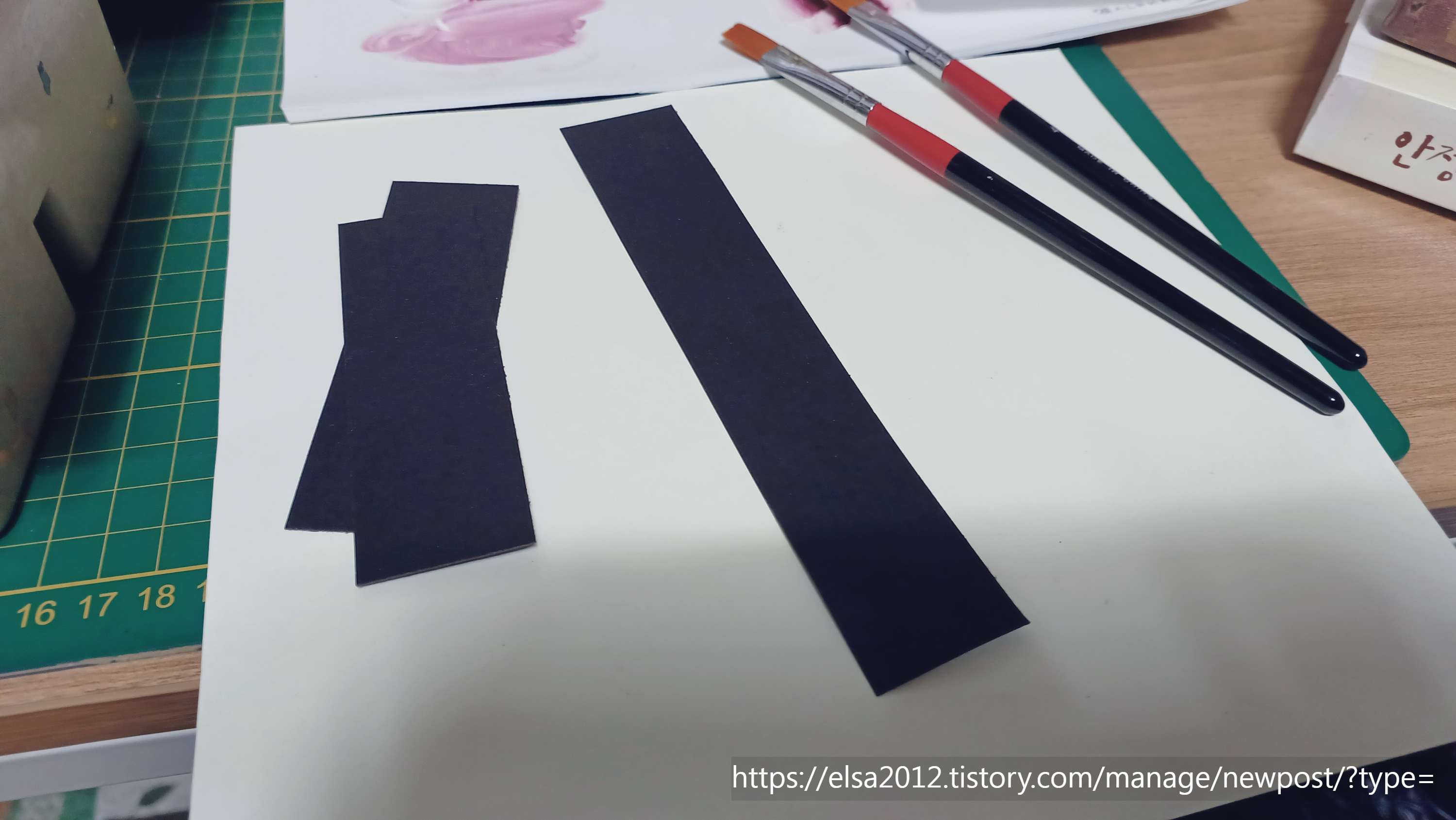 우선 검정색 두꺼운 도화지를 준비. 커팅기로 자르고 그림을 그려나갑니다.
